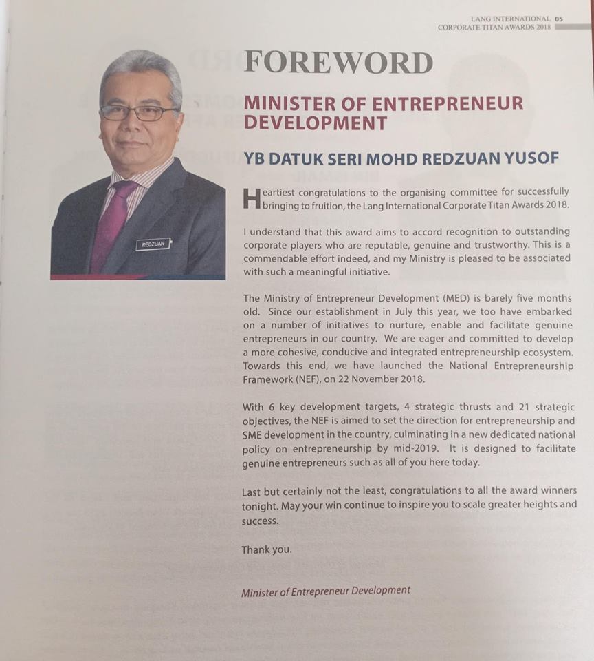 夏娃哲学.时尚婚纱用最真诚的心感谢多年来至尊的客户们给予我们的支持及信任,让我们的团队们能不断的努力創新,将一切最好的服务与产品带给我们的客户。在服务业努力多年,我们公司终得到了Lang International Corporate Titan Awards 的肯定。感谢Chairman Selection Committee YBHG .Dato Lee Chee Weng .在经过多方面的严格检核中及认同,颁发了这奖项给予我们。未来,我们会更加努力的全力打造三大种族婚礼一站式服务。这奖项是屬于至尊的客户们、精英团队们与家人们,因为有你们大家才能获得肯定。谢谢!